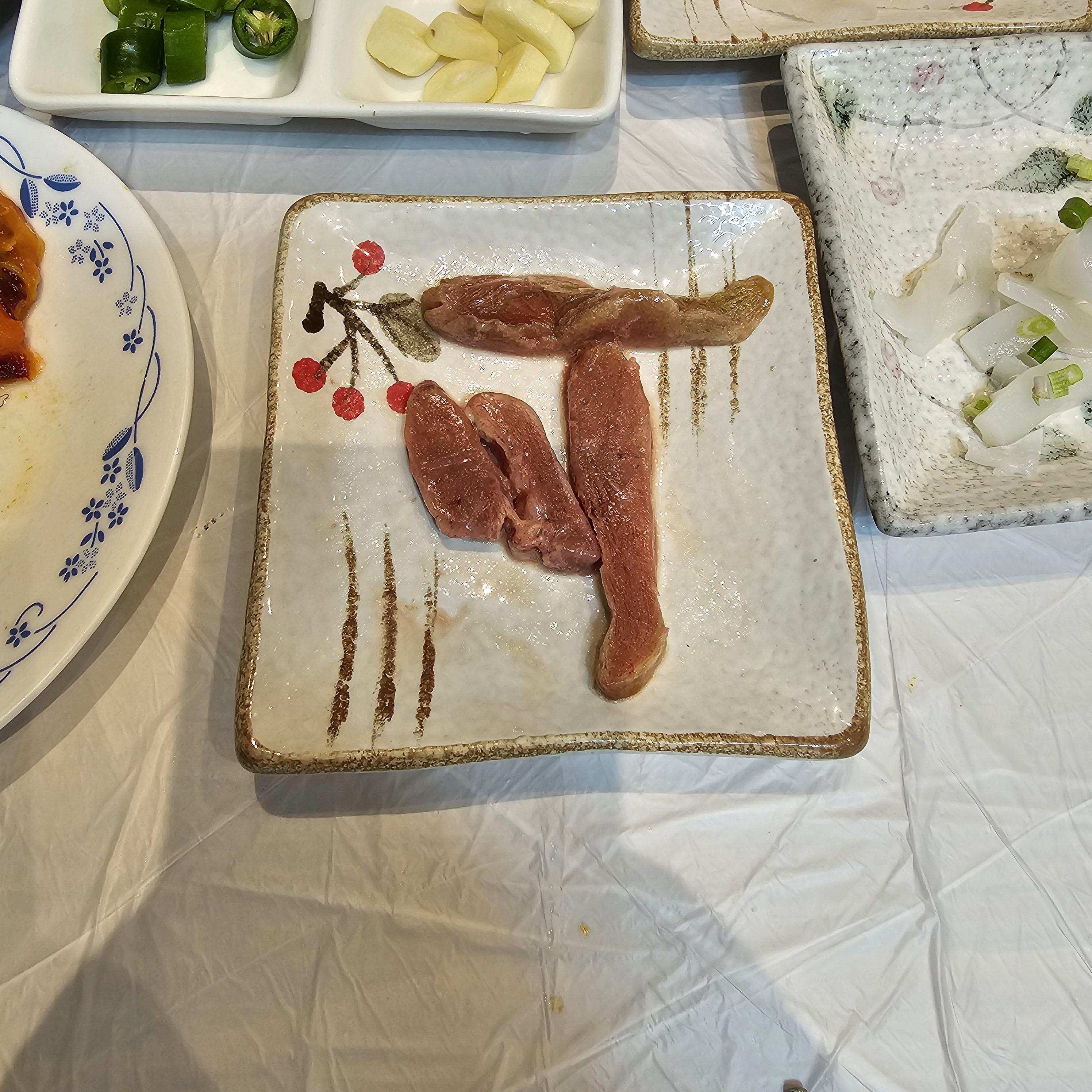 한치회, 냉동 홍어회, 홍어삼합, 생선전, 호래기통찜, 갈치구이, 생선조림, 조개탕 등 평소에 잘 접할 수 없었던 메뉴들도 다양하게 나왔다.